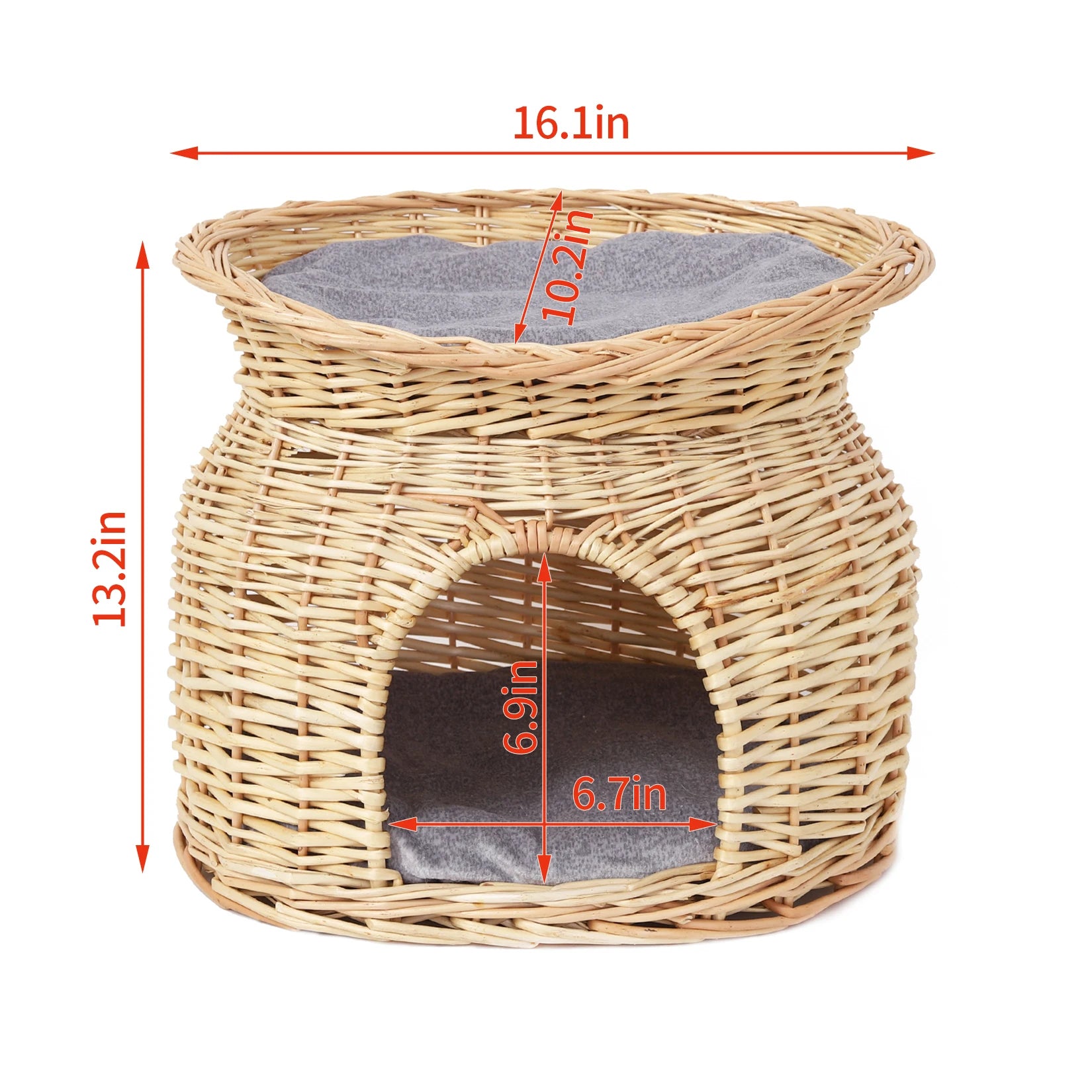 Two Tier Wicker Cat Bed Play House With Plush Cushions