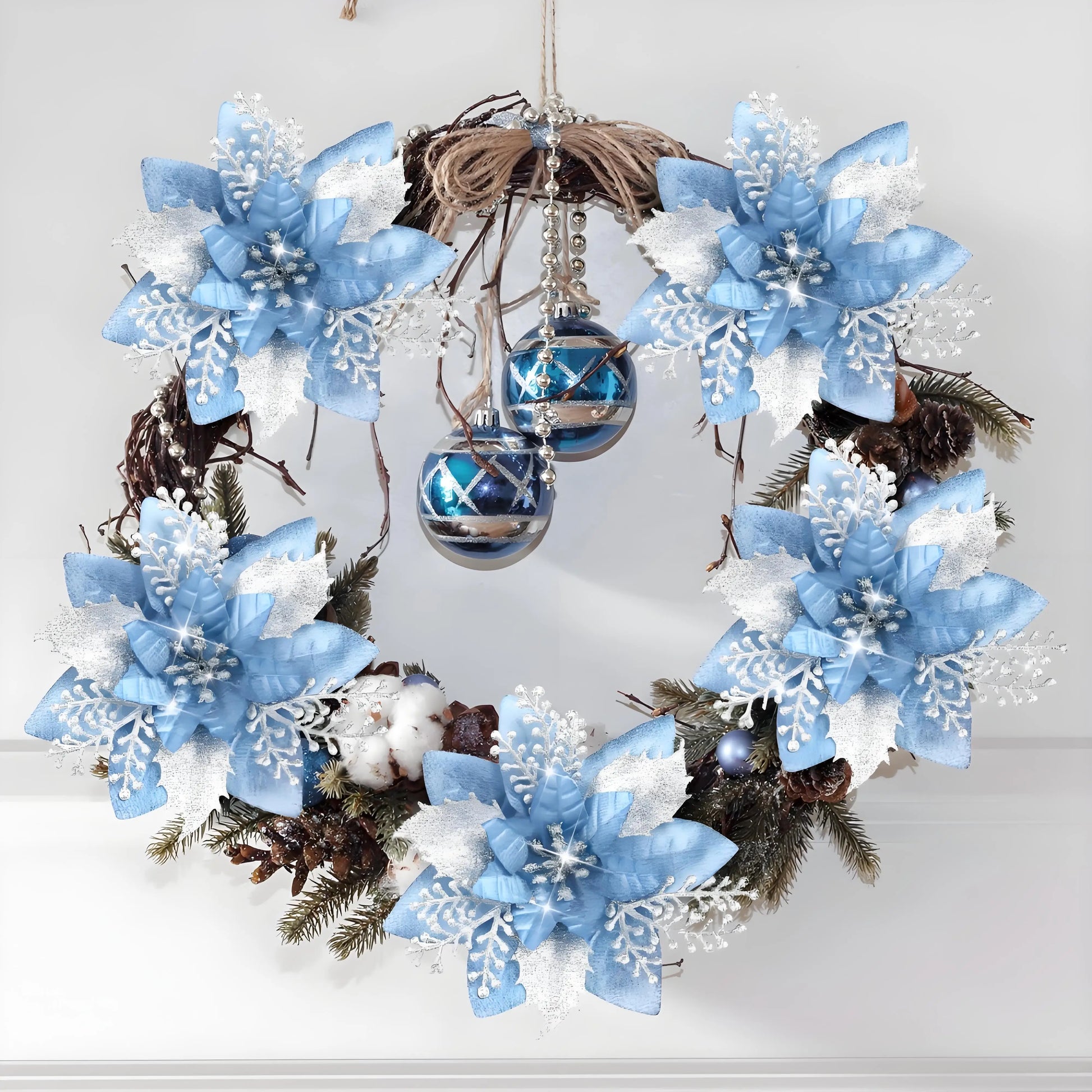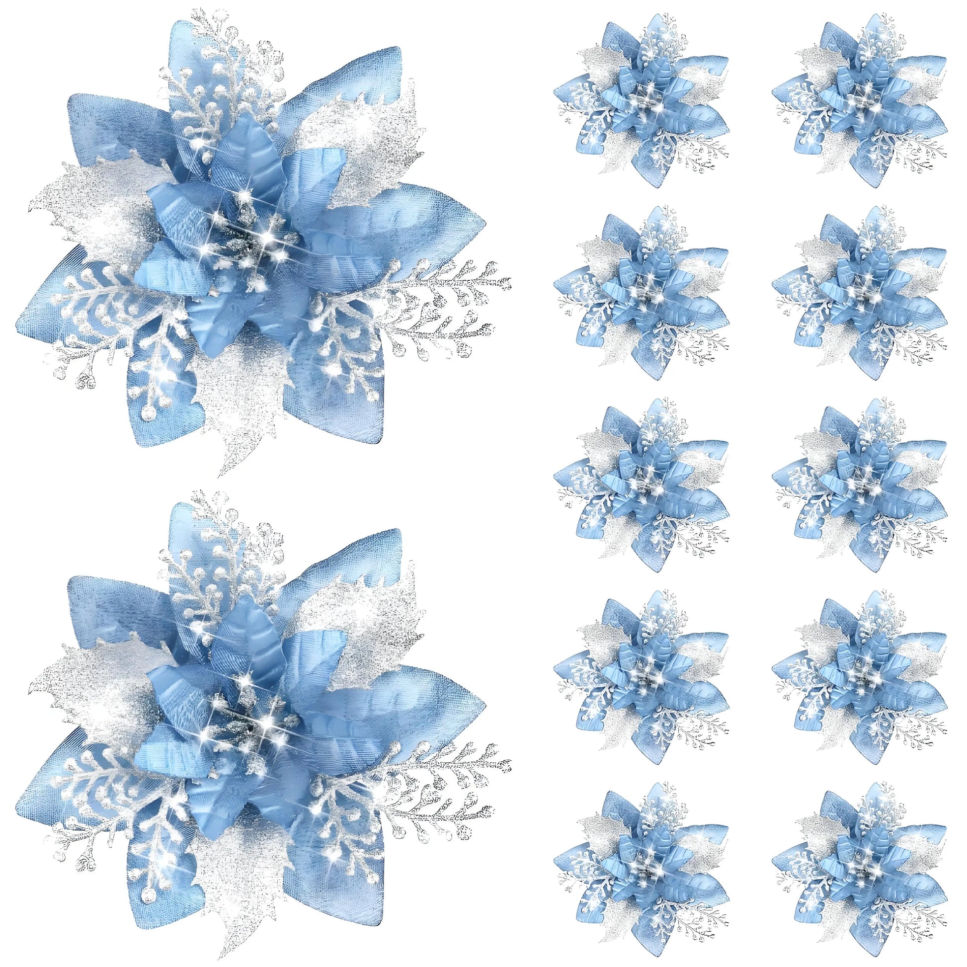 Glitter Poinsettia Floral Clips Pack for Christmas Decor