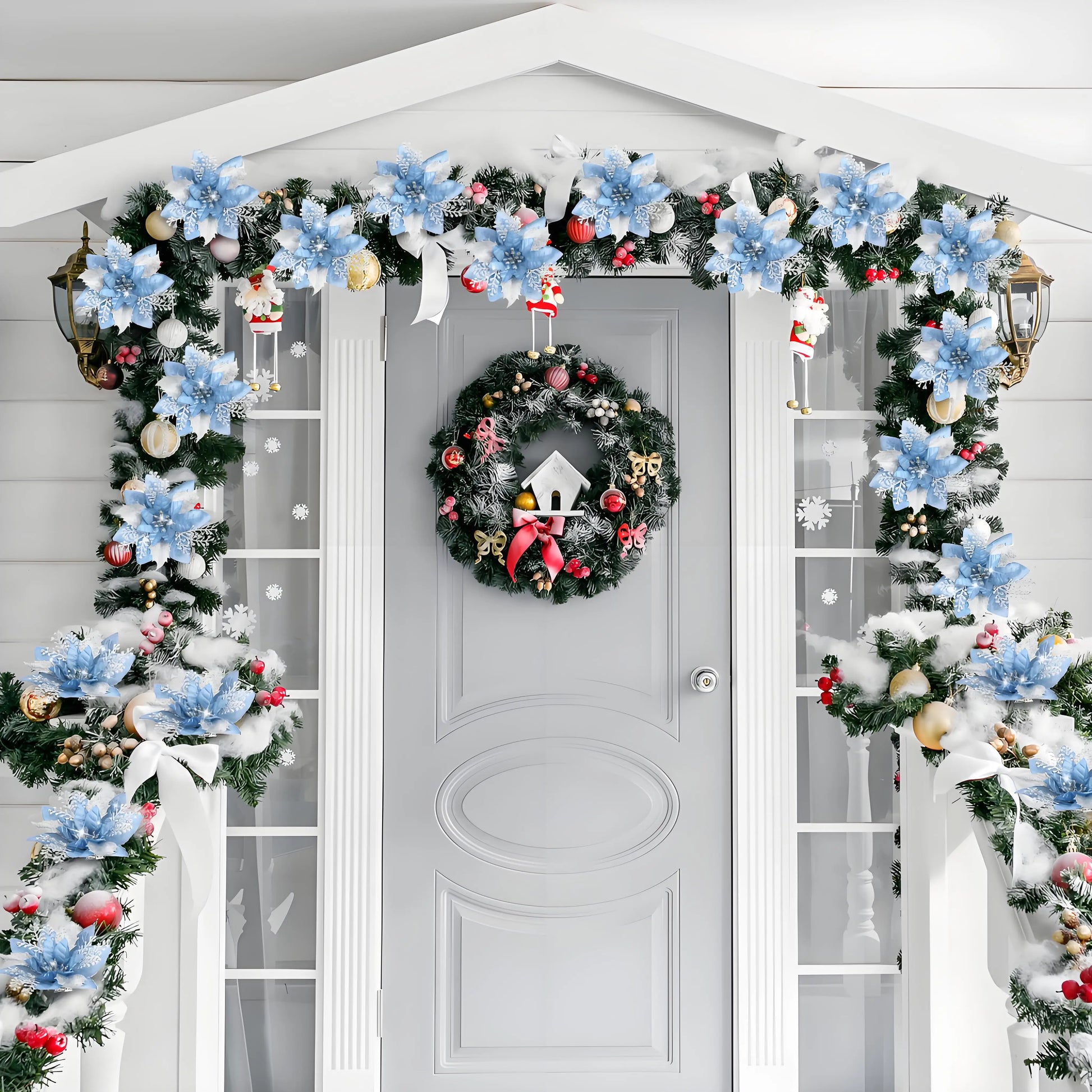 Brighten your holiday spaces with the Glitter Poinsettia Floral Clips Pack for Christmas Decor. This 20-piece set features lifelike poinsettia blooms crafted from polyester with a shimmering glitter finish that catches the light from every angle. Each bloom is mounted on a handy clip, making it effortless to attach to trees, wreaths, garlands, and other festive accents for instant holiday sparkle.