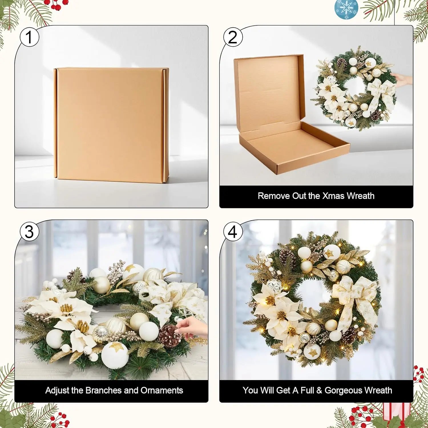 Elevate your holiday welcome with the 24-Inch Lighted Christmas Wreath, a large, pre-lit centerpiece designed for front doors, entryways, and living spaces. This timer-enabled wreath delivers a warm, festive glow that lasts through the season, while its battery-powered design frees you from cords and outlets.