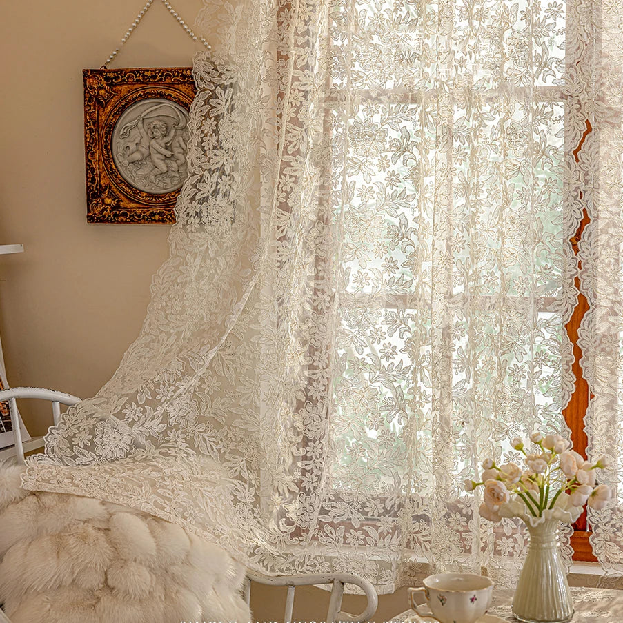 Two Piece French Vintage Embroidery Lace Sheer Curtains