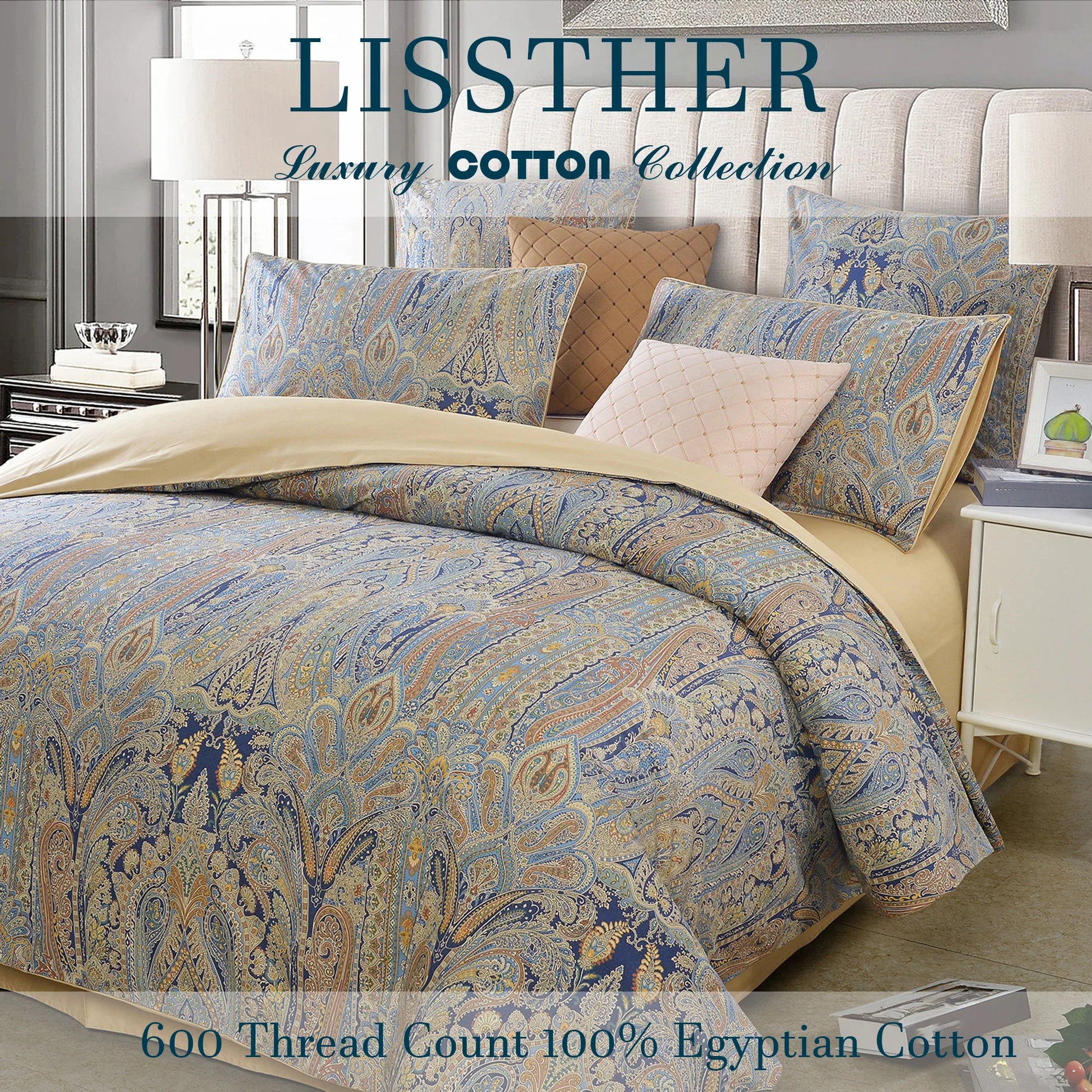 Egyptian Cotton Duvet Cover Set Vintage Paisley Pattern