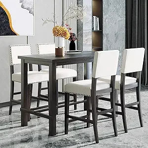 - Compact for Small Spaces: Table dimensions 52"L x 27"W x 36.3"H; chair dimensions 18"L x 19"W x 40.5"H. Counter-height design creates a comfortable, versatile dining experience for standing or sitting by the table.