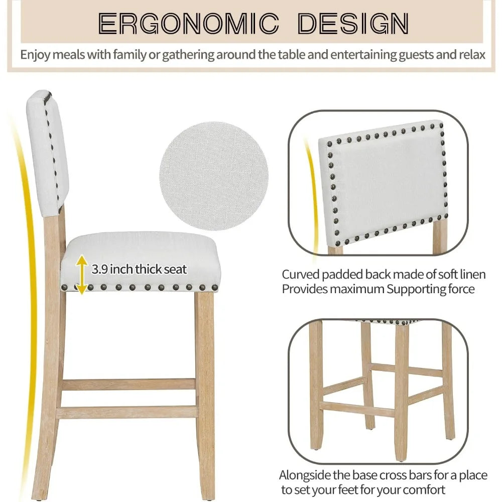 - Elegant Appearance & Ergonomic Comfort: Four cushioned chairs feature nail head trim in a contemporary black and beige palette. Velvety soft linen-like upholstery and curved backrests provide excellent support, while base cross bars offer a convenient footrest for added comfort.