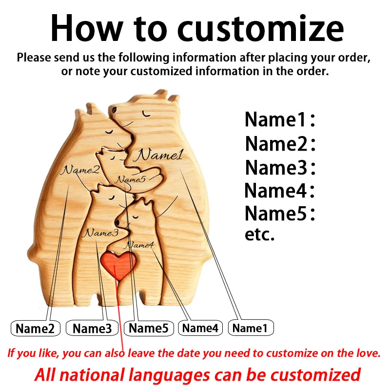 Personalized Wooden Bear Family Puzzle With Custom Name