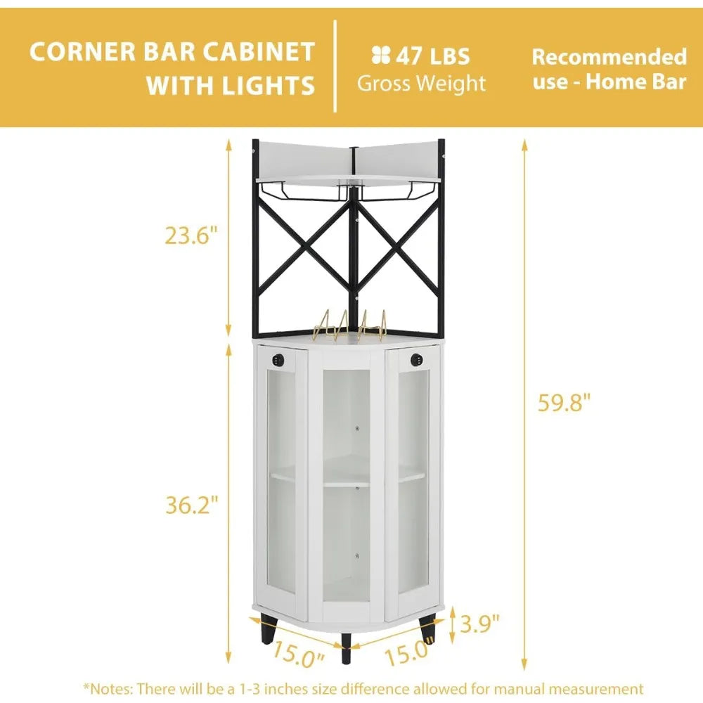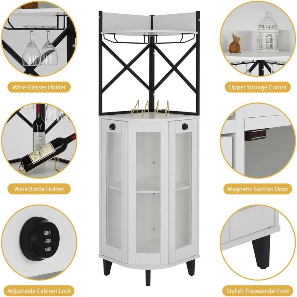 Corner Wine Cabinet With Lockable Glass Door And Led Lighting