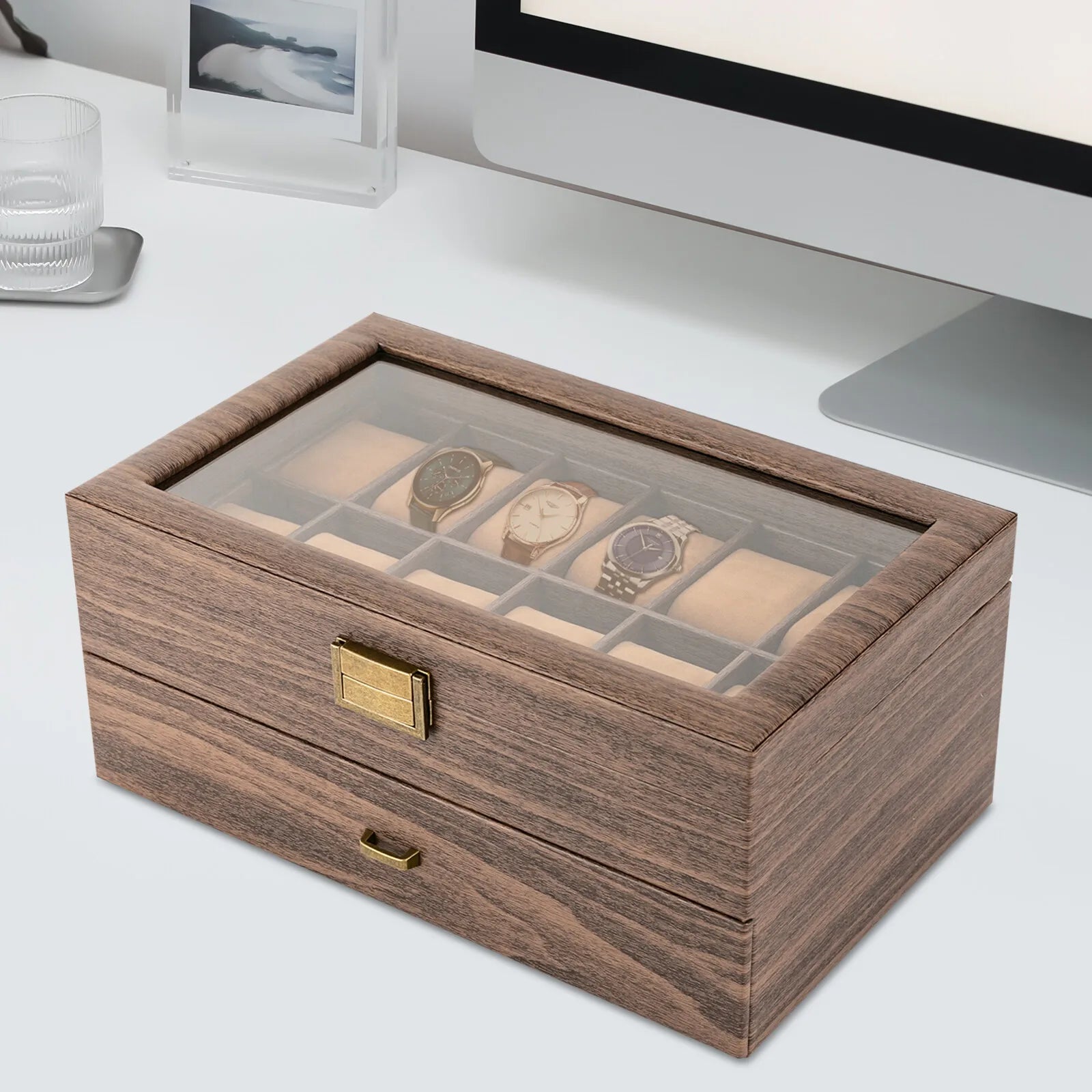 - Two-tier, 24-compartment design to accommodate most watch sizes, keeping your collection neatly organized at a glance.