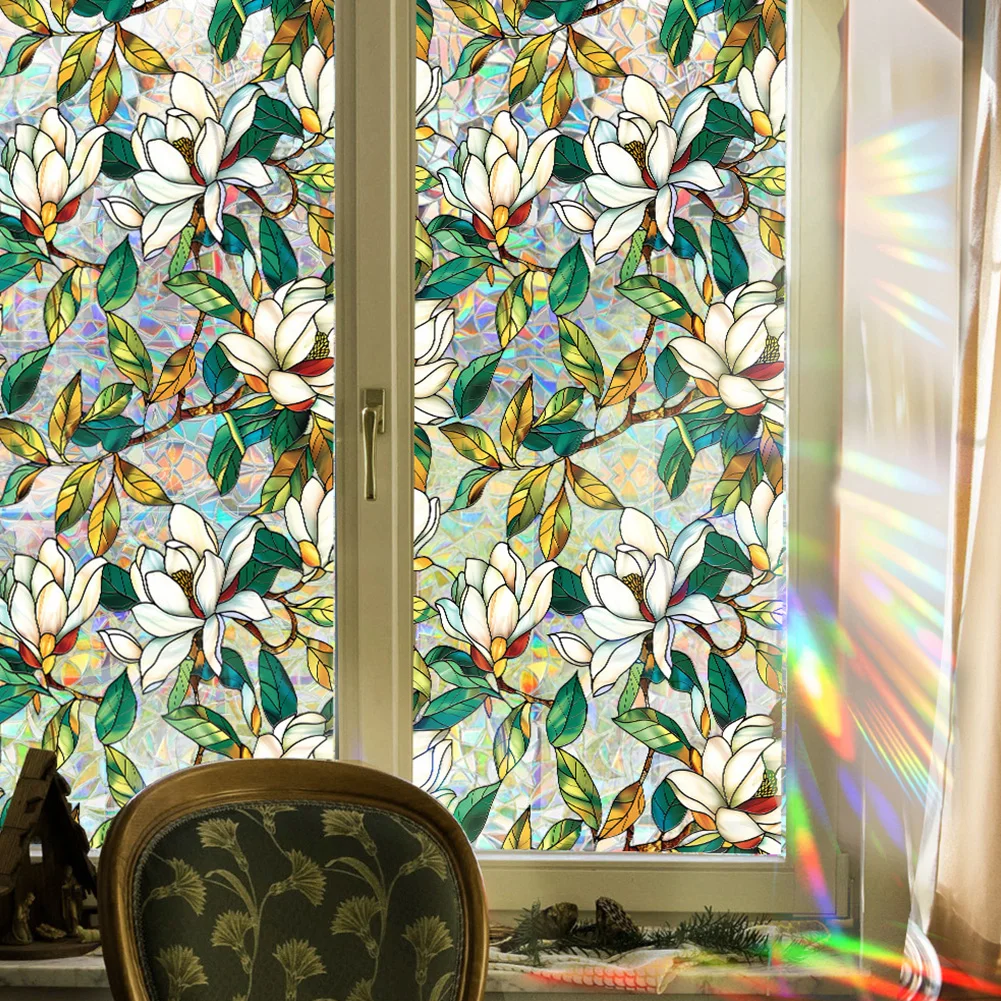 Transform your windows with our Stained Glass Window Film Privacy Decals Removable Cling Home and bathe any space in a captivating rainbow of color. This decorative, glue-free window film brings artistic flair to living rooms, bedrooms, offices, shops, and restaurants while maintaining essential privacy and light.