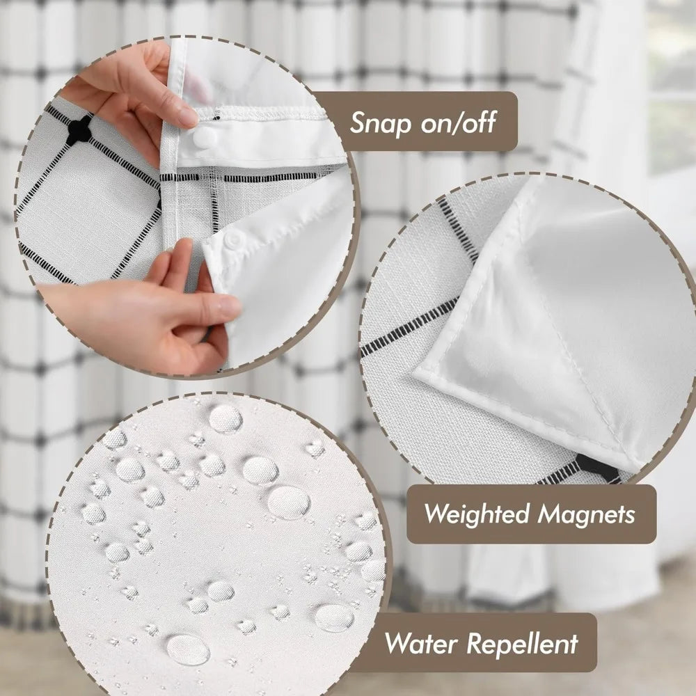 Upgrade your bathroom with the No Hook Shower Curtain featuring a Snap-In Liner in a Boho Jacquard design. This curtain blends bohemian charm with farmhouse elegance, giving you a luxurious hotel-style bath experience at home.
