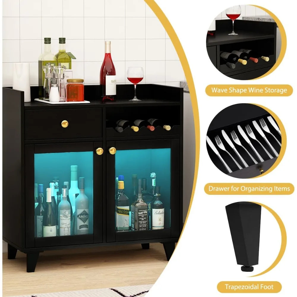 Elevate your entertaining space with the ANGDUO Wine Cabinet With Glass Doors And LED Lighting for Bar. This compact, modern cabinet blends stylish glass doors with vibrant LED ambience, turning any room into a sophisticated home bar.