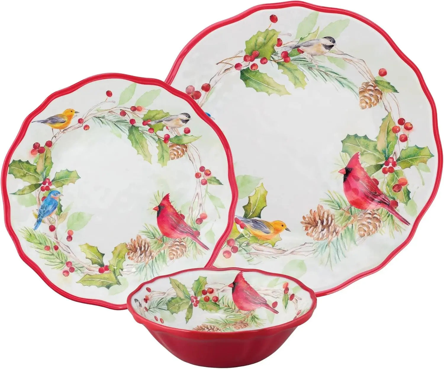 Winter Birds Melamine Dinnerware Set For OutdoorLiving Dining Festive Celebrations