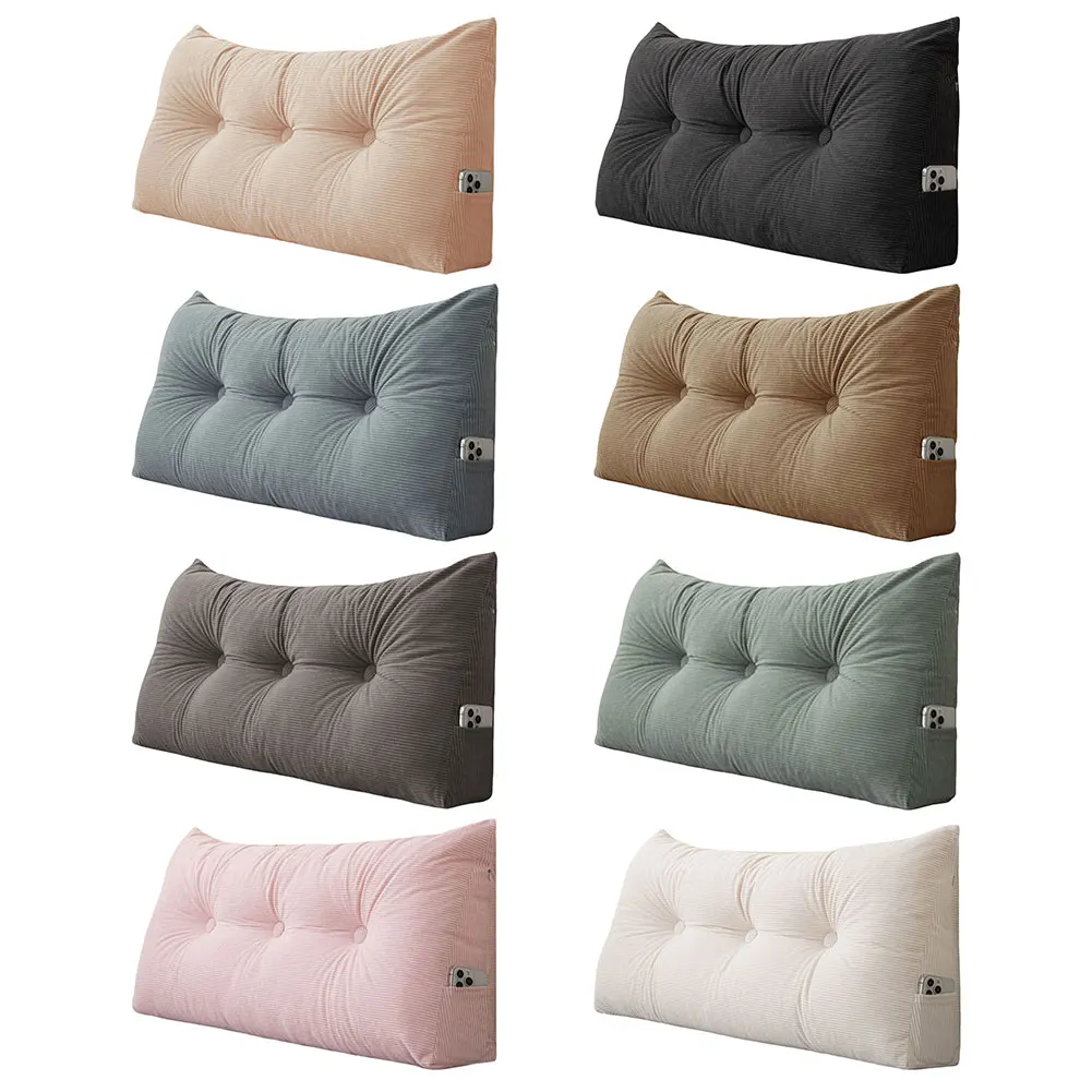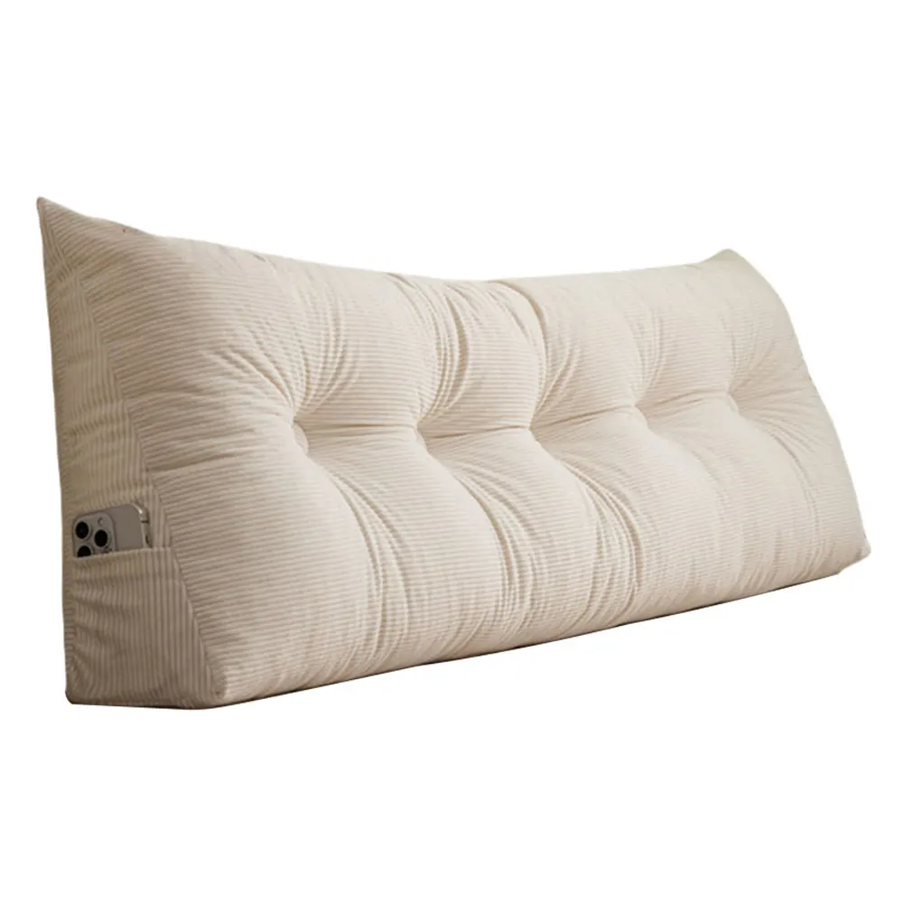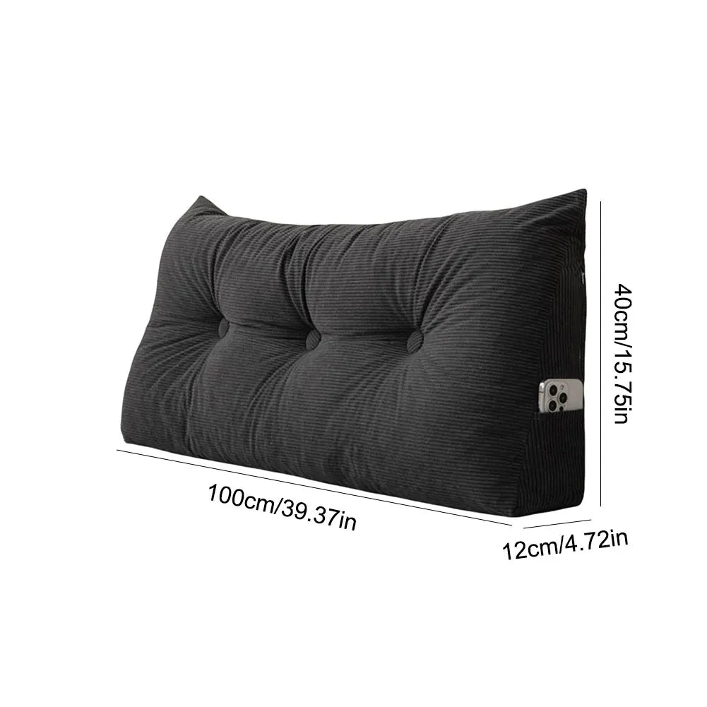 Wedge Headboard Pillow Cushion With Side Pockets For Reading Support