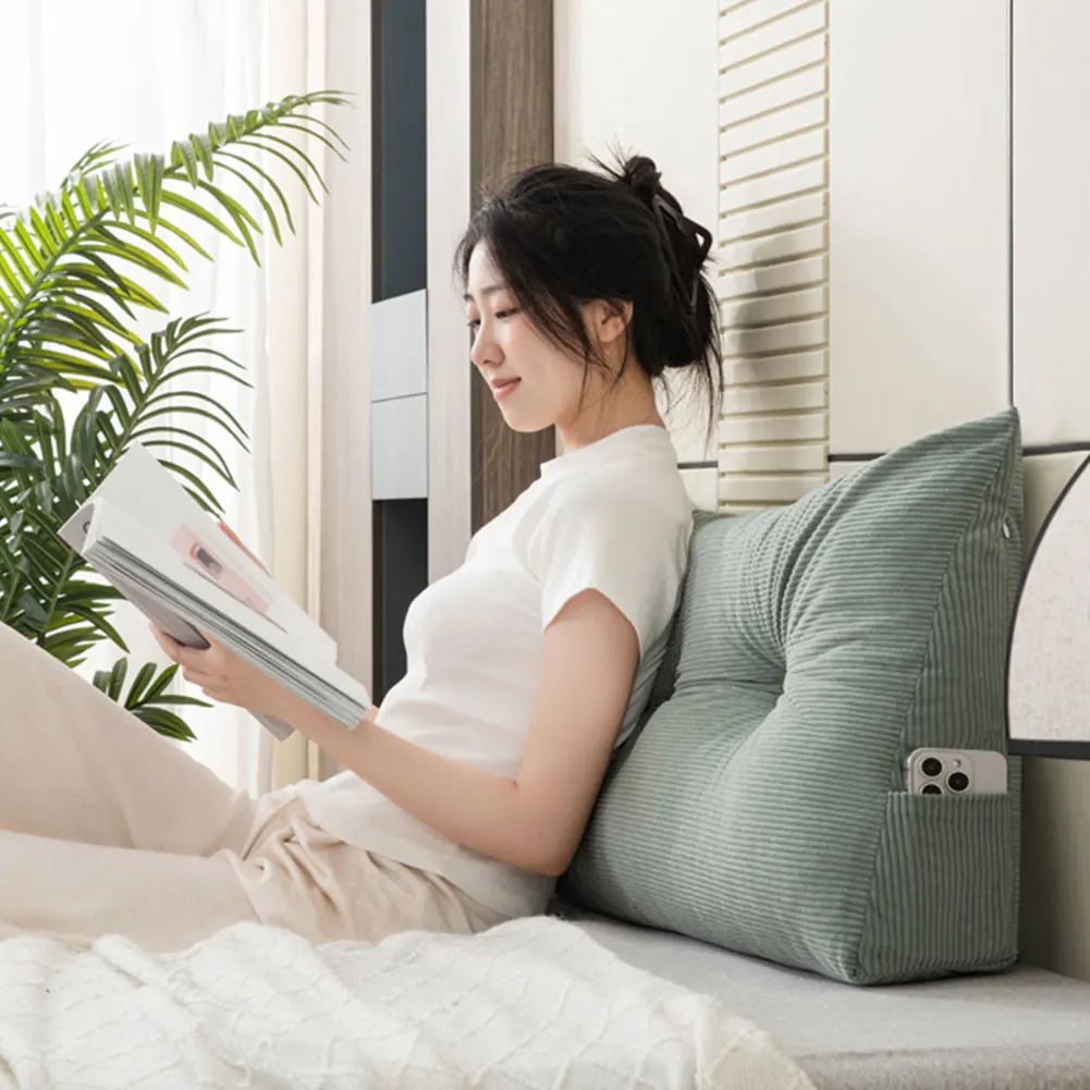 Transform your bed into a cozy retreat with the Wedge Headboard Pillow Cushion With Side Pockets For Reading Support. This triangular wedge is designed to cradle your back while you read, stream, or unwind, making it perfect for beds without headboards and equally at home on sofas, couches, or loungers. A stylish, practical addition that elevates comfort and decor in one seamless piece.